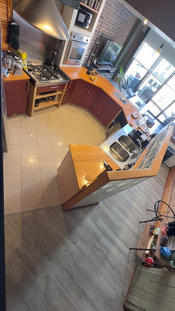 La vivienda cuenta con un living luminoso, con techos altos y una cocina integrada con mucho espacio de almacenamiento,