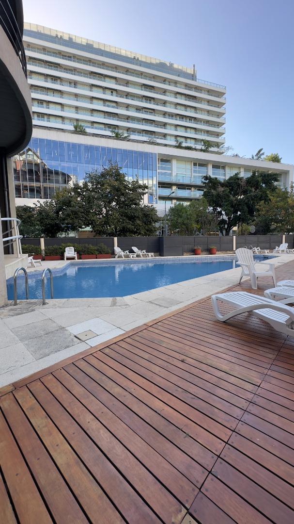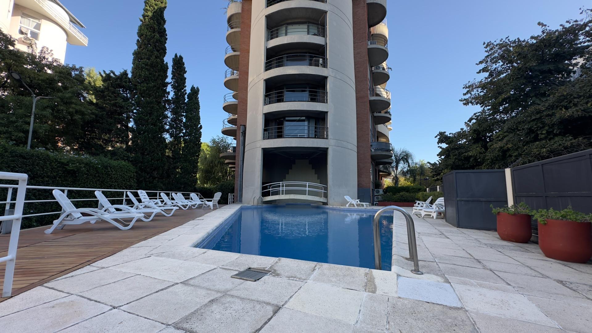 piscina, salón de usos múltiples con jardín, gimnasio, sauna y lavandería.